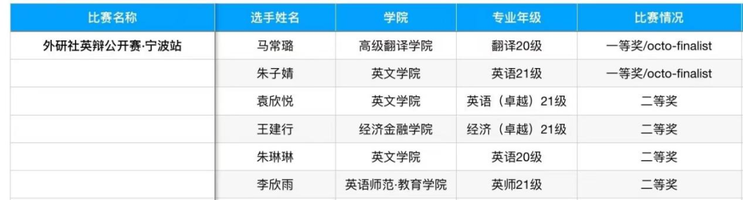 在由“外研社·国才杯”全国大学生英语辩论赛组委会主办、宁波大学科学技术开云体育 协办的外研社英辩公开赛·宁波站比赛中,王建行荣获二等奖,本次比赛参赛队伍共122支,参赛院校有北京大学、复旦大学、外交开云体育 、北外、上外、西交大、爱丁堡大学等。